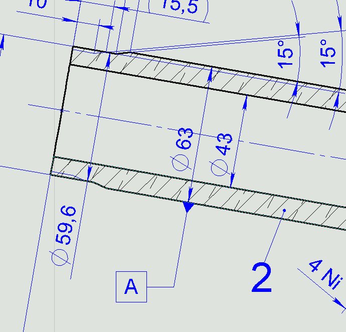 ich kann daraus nicht ersehen dass das oberflächesymbol genau auf den masspfeil ausgerichtet werden muss auf die verlängerung der masslinie heist lediglich dass wenn deine bemassung ausserhalb des teiles liegt sagen wir vertikaler masspfeil kannst du auf die horizontal rausgezogenen linien dein oberflächensymbol setzen und brauchst nicht direkt an die werkstückoberfläche mfg Eine Antwort auf diesen Beitrag verfassen (mit Zitat/Zitat des Beitrags) IP |