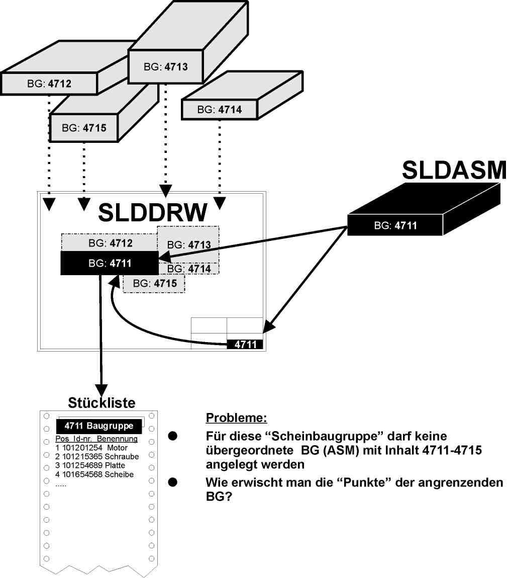 Da ein Bild mehr sagt als 1000 Worte: Hier die gesamte Problematik als JPG: Hauptprobleme: - Wie erreiche ich das ohne Erzeugung einer neuen Baugruppe? - Wie plaziere ich die Ansichten paßgenau auf der Zeichnung? - Wie komme ich an die Stückliste "4711" (ohne 4712-4715)? Grüße F.Herrmann Eine Antwort auf diesen Beitrag verfassen (mit Zitat/Zitat des Beitrags) IP |