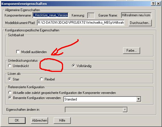 Hallo zusammen. Ich habe hier in der Firma frisch angefangen und arbeite eigentlich auf dem CAD Inventor. Nun haben wir aber noch alte Aufträge auf dem System Solid Works 2001. Nun muss ich an einem solchen Auftrag etwas ändern, habe aber genau mit mit dieser Datei ein Problem: Es wird immer die komplette BG vollständig geladen und das 3D-Model wird mir als Drahtkörper dargestellt. Auch wenn ich auf "schattiert" klicke. Bei der kleinsten verschiebung oder veränderung muss mein Compi (Intel P4 1.8GHz, 1GB Ram, NVIDIA GeForce2 400MX 64MB Ram) das Bild dann ca. 15-20 Sekunden lang wieder neu aufbauen. Als ich eine andere Baugruppe öffnete, musste ich feststellen, dass sich diese schattiert darstellen läst, über den Baugruppenelementen ist eine Feder (Reduzierte Darstellung) und in den Komponenteneigenschaften befindet sich unter "Unterdrückungsstatus" eine weitere Option: Reduziert. Sie lässt sich auch problemlos drehen... (Baugruppe ist ca. gleich gross!) In den Systemoptionen Leistung habe ich das Häckchen bei "Teile automatisch in reduzierter darstellung laden" gesetzt, aber nichts. Ich hoffe, dass mir jemand eine Lösung für mein Problem hat. MFG Stephan