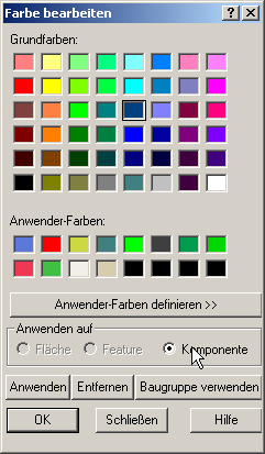 Hallo Piet, klar; ein Teil musss ja irgendeine Farbe haben. Ein Teil ohne Farbe gibt es nicht. Du kannst also nur eine scheußliche Farbe durch ein schönere Farbe ersetzen und zwar so wie Du selber beschrieben hast, in dem Du halt eine andere Farbe auswählst. In der Baugruppe ist es anders deswegen, weil Du einem Teil in der Baugruppe eine andere Farbe zuweisen kannst als dieses Teil als Einzelteil hat. Mit den Entfernen Button kannst Du dann das Baugruppen-Teil wieder auf seine Original-Einzelteil-Farbe zurücksetzen. Alles klar? Ha, Otto, war wieder einer schneller. ------------------ Gruss Richard