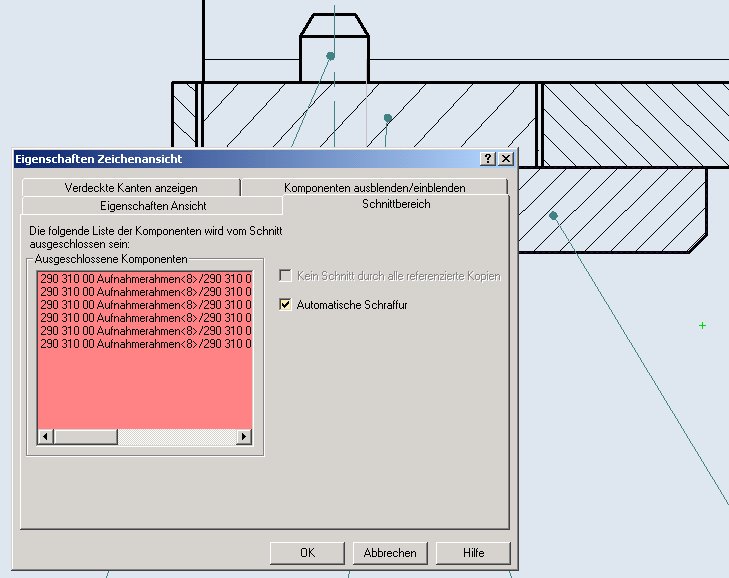 Hallo Robert, warscheinlich sind es, wie Da Volli bereits geschrieben hat, Interferenzen. Zusätzlich solltest du die Zeichenansicht, in der sich die Schraffur befindet, mit RMB anklicken, Eigenschaften > Schnittbereich anwählen und den Haken für "Automatische Schraffur" setzen. Dadurch erhält jedes Teil eine andere Schraffur. ------------------ Gruß, Walter Eine Antwort auf diesen Beitrag verfassen (mit Zitat/Zitat des Beitrags) IP |