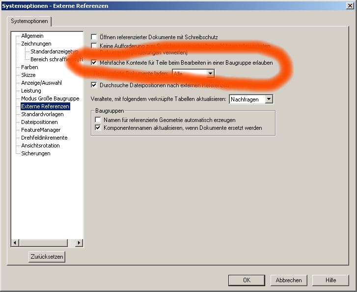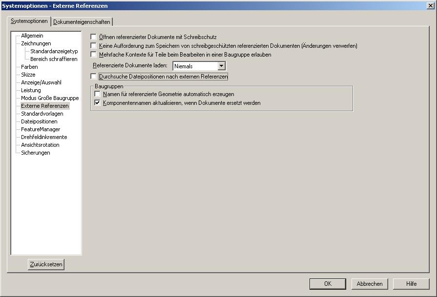 Hallo guischmi, nein, ein solches Tool kenne ich auch nicht, manchmal hilft es unter Systemoptionen/Leistung - "Verifizieren bei Modellaufbau" den Haken zu machen (dauert allerdings auch länger). Die Warnmeldung ist eigentlich recht eindeutig, irgendwo denkt SolidWorks sind noch gesperrte Referenzen. Zeigt auch das Teil selbst den Pfeil für gebrochene Referenzen (also -> x) oder auch gesperrte ( -> * )? Wenn es einen Mix gibt (also sowohl gesperrte als auch gebrochene) zeigt das Teil (und die Komponente) den Pfeil für gesperrt! Kannst du das Teil mal hier reinstellen, ist ein interessanter Fall (aus sportlicher Sicht ) Ciao, Stefan PS: Michele hat sich wohl im Thread vertan ... ------------------ Inoffizielle deutsche SolidWorks Hilfeseite http://solidworks.cad.de Eine Antwort auf diesen Beitrag verfassen (mit Zitat/Zitat des Beitrags) IP |