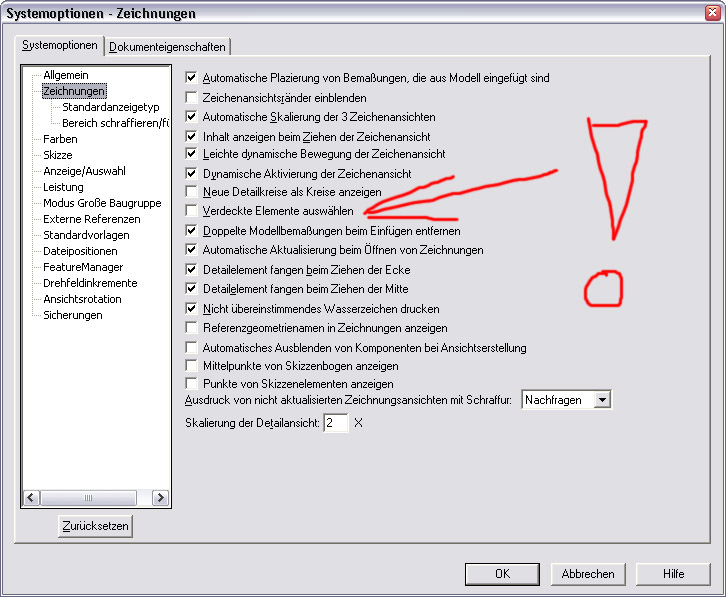 Hallo Manuel, vielen, vielen Dank für den Tip mit der Versicherung. Es tut wirklich Not, daß ich da was tue. Die Untersuchung weiterer Teile und Baugruppen in den letzetn Tagen haben bei uns doch noch eine ganze Reihe von durch SWX begünstigten Fehlern hervorgebracht. Solche Fehler kannten wir von unserem Vorgänger-CAD überhaupt nicht. Ich habe das Gefühl, daß hier bei SollidWorks irgendwas mit der Ergonomie und Plausibilität nicht hinhaut. Viele Grüße und frohes Schaffen Thomas PS: Falls es doch noch einer weiß: Wo kann ich einstellen, daß in der Zeichnung im Ausbruch die verdeckten Kanten nicht angewählt werden? Eine Antwort auf diesen Beitrag verfassen (mit Zitat/Zitat des Beitrags) IP |