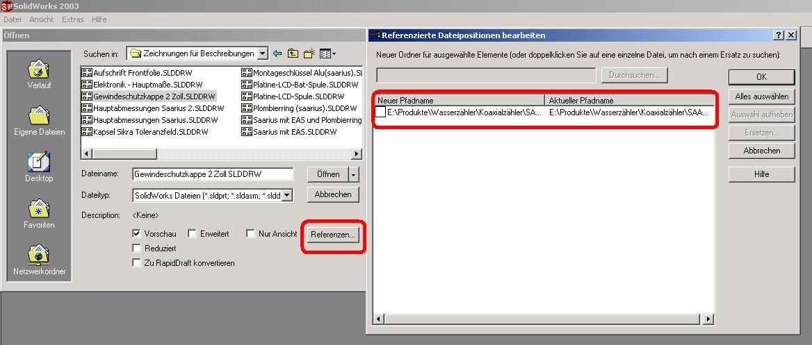 Hast Du auch die dazugehörigen Dateien der Baugruppen, Unterbaugruppen und Einzelteile bekommen? Es passiert ab und zu in userer Firma, daß wir Zeichnungen ohne die nötigen Datein bekommen, obwohl auch unsere Schwesterfirmen mit SWX