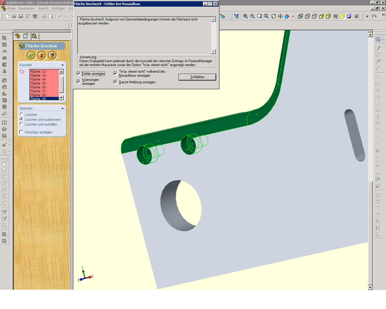 Hallo zusammen, eine kleine Möglichkeit der, zumindest teilweisen, Wiederbelebung ist die Funktion "Flächen löschen" (zu finden unter "Einfügen / Flächen...). Vorallem Radien lassen sich so schön von importierten Teilen entfernen, und nach Anbringen einer Formschräge wieder neu erstellen. Allerdings ist diese Funktion stark eingeschränkt, sobald die Geometrien ineinander verlaufen beginnen auch hier die Probleme. Aber ich denke dass auch FeatureWorks nicht alles lösen kann. Gruss Markus
