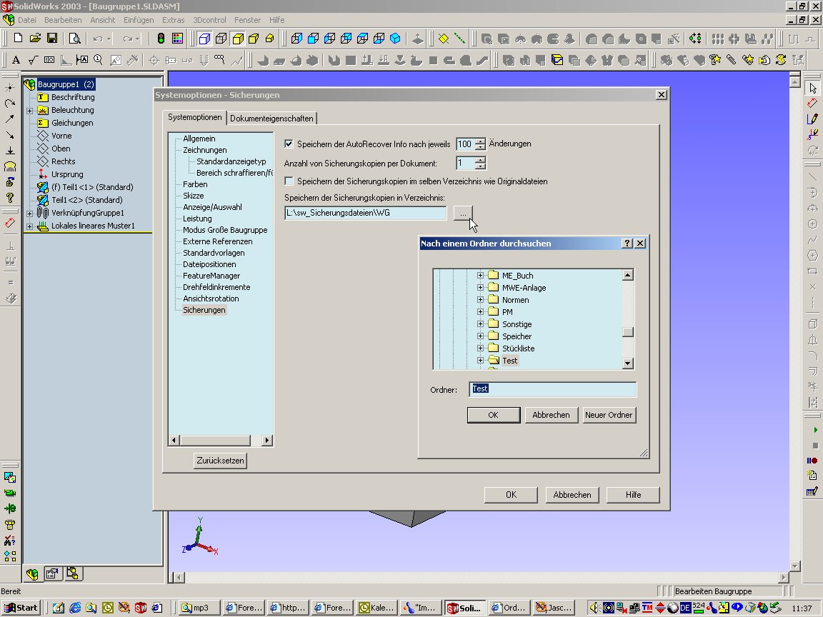 Hallo Walter, vielen Dank für Deine Antwort. Ich bin mir jetzt nur nicht ganz sicher ob ich mich richtig ausgedrückt habe. SWX legt doch z.B. Favoriten vom Bohrungsassistent oder Toolbox Daten unter, per Default, "C:\Programme\Gemeinsame Dateien\Solidworks Data" ab. Diesen Eintrag würde ich gern ändern. Taucht in der Registry unter ..HKEY_LOCAL_MACHINE auf. Bin mir allerdings nicht ganz sicher ob das gut tut, dort zu ändern. Gruss armin Eine Antwort auf diesen Beitrag verfassen (mit Zitat/Zitat des Beitrags) IP |