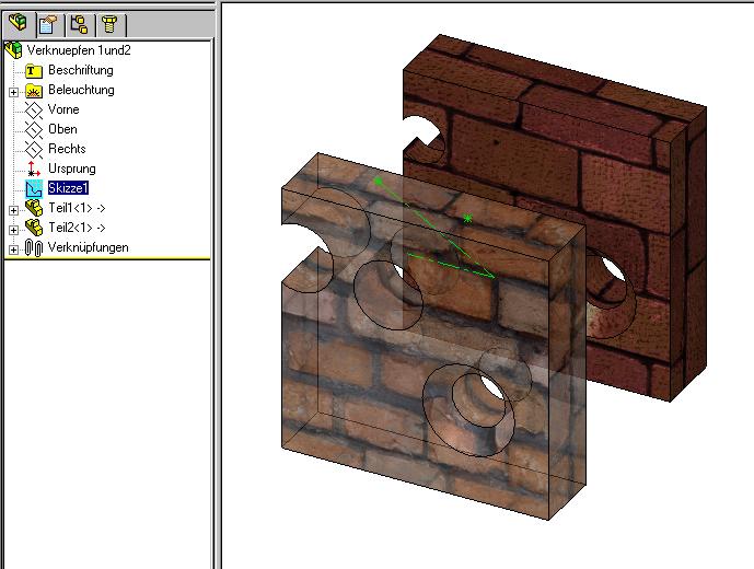 Hallo Rolf, extra für dich hab ich mit schwerem Gerät ein paar Löcher in die Mauer gebohrt. Die Skizze in der Baugruppe steuert Löcher in beiden Teilen, das Loch rechts unten ist vom vorderen Teil auf das hintere verknüpft. Manchmal ist es beim Auswählen der Punkte sinnvoll den Auswahlfilter zu benutzen, wenn sich die Punkte nicht anklicken lassen. Viel Erfolg Michael Eine Antwort auf diesen Beitrag verfassen (mit Zitat/Zitat des Beitrags) IP |