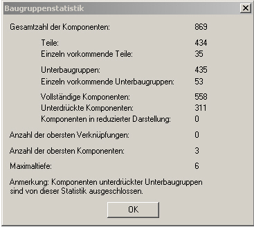 Hallo uc, Ja genau, ich habe hier eine Verwirrung in der Nomenklatur. Komme ja auch aus der IV-Ecke <G> (da gibts viele Features erst gar nicht) In der frisch importierten BG sind die Komponenten alle unterdrückt, also graue Klötze. Ein jeder dieser Klötze erkennt sich selber erst nach "auf vollständige Darst..." als BT oder Unter-BG mit weiteren Verschachtelungen. Verschiedentlich spricht SWX selber also von "nicht vollständig" und hat so die Verwirrung unterstützt. Hier die BG-Statistik einer (von vielen) Haupt-BG nach einer Stunde Klixerei... ------------------ mfg - Leo Eine Antwort auf diesen Beitrag verfassen (mit Zitat/Zitat des Beitrags) IP |