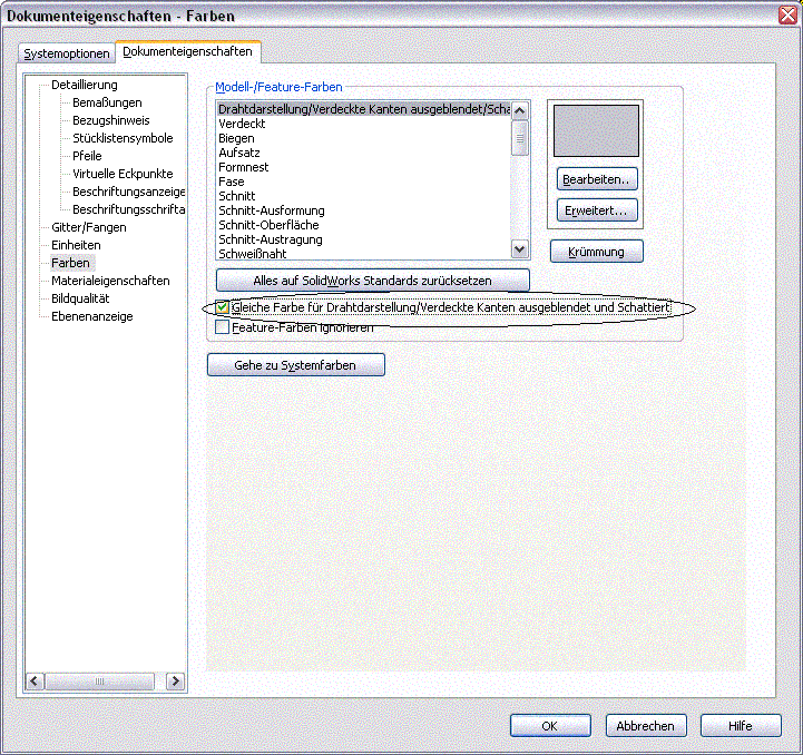 Hallo MaFJoL, in den Dokumenteigenschaften kann man die Anzeige umstellen (siehe Bild). BTW : Wie hieß es bei uns vor zig Jahren "Der Profi benötigt nur den Wireframe!" Wusste gar nicht, daß das heute in Zeiten von OpenGL noch so gefragt ist  HTH ! ------------------ Johannes Anacker Sales Support SolidLine AG Eine Antwort auf diesen Beitrag verfassen (mit Zitat/Zitat des Beitrags) IP |