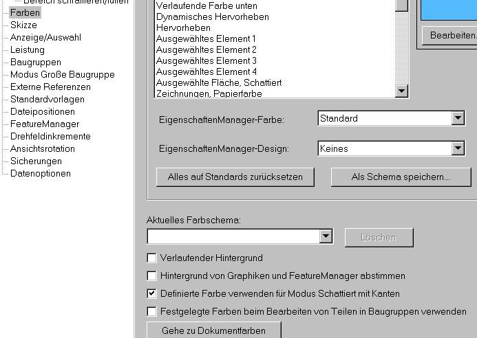 Vielen Dank für all die hilfreichen Antworten...ich hoffe die helfen mir dann doch weiter...ich werde den Kampf gg SWX  nicht aufgeben @kaehner "In V5 sind die Kanten doch auch standardmäßig schwarz?" Das ist nicht ganz richtig! (siehe Anhang) Thread geschlossen Bis zum nexten Mal