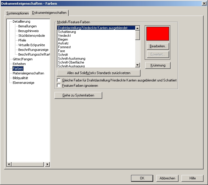 Hallo, mal wieder ich. Weiß jemand ob man bei SolidWorks die Kanten bei der Drahtdarstellung farbig statt schwarz einstellen kann? Meiner Meinung nach sollte die Drahtdarstellung schon so aussehen wie die Körper farbig sind. Sonst sieht man ja den Wald vor lauter Bäumen nicht...Vielen Dank für alle Antworten! Der größte SWX -Kritiker...MaFJoL