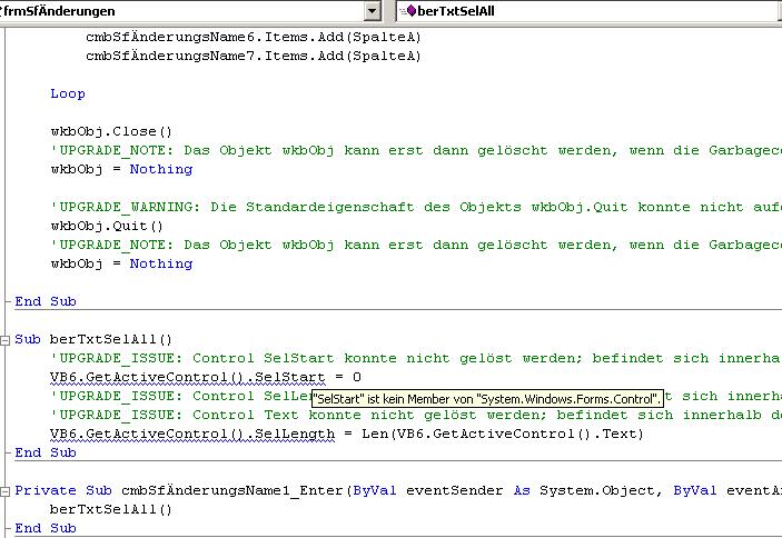 Ist natürlich eine Anfängerfrage, aber wie mach ich diesen Verweis? Die ModelDoc hab ich ersetzt. Zitat: - Die SelStart- Sache geht so in VB.NET nicht. Code einfach mal deaktivieren und dann sehen, wie sich die ganze Sache verhält
