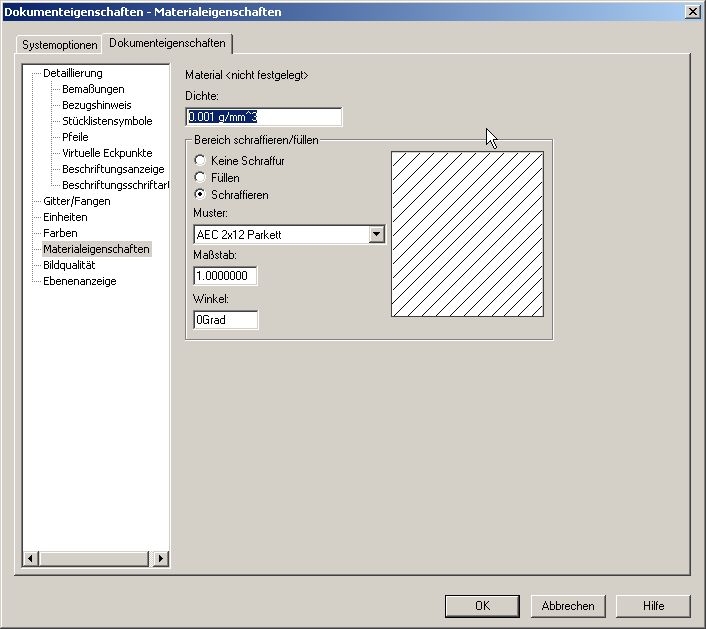 Hallo manu, entschudige die späte Antwort, aber ich musste zwischendurch was arbeiten und die Mittagspause etwas ausdehnen um zum skaten zu gehen . Ich weis nicht ob du mein Problem richtig verstanden hast bzw. ich deine Lösung: Die Dichte soll nicht aus den Dokumenteigenschaften\Materialeigenschaften (siehe Anhang) ausgelesen werden und dann in die Dateieiinformationen eingetragen werden (das habe ich inzwischen auch hinbekommen), sondern die Toolbox-Teile sollen eben in diesen Dokumenteigenschaften\Materialeigenschaften die richtige Dichte von 7,85 statt 1 haben. Leider kann ich das ZIP-file nicht downloaden. Die Unitis habe ich schon vor`m Mittag abgegeben.