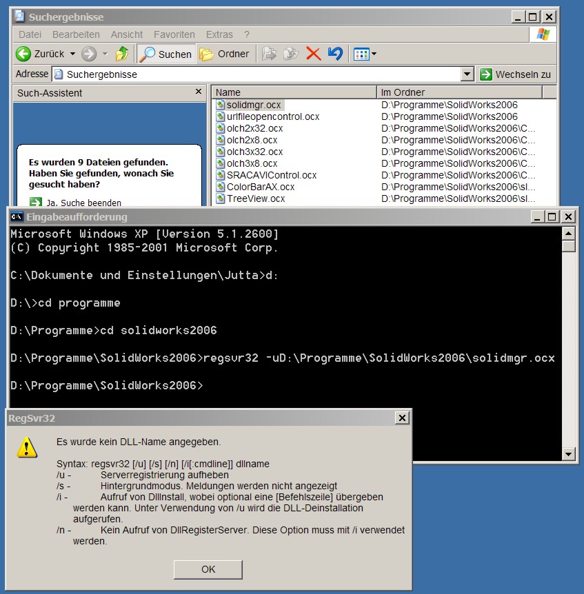 Alles klar, danke. Der Vorgang hat nun funktioniert – aber leider ohne Erfolg. Wenn ich die Version des SW-Explorers starte, die man frei herunterladen kann, erscheinen die gleichen Meldungen. Zusätzlich dazu noch: SolidworksExplorer.exe – Fehler in Anwendung Die Ausnahme „unknown software exception“ (0x80000003) ist in der Anwendung an der Stelle 0x01de0a7c aufgetreten. Ich benutze WIN XP SP2. Muß man da irgendwo vielleicht was aktivieren ? Viele Grüße Jutta