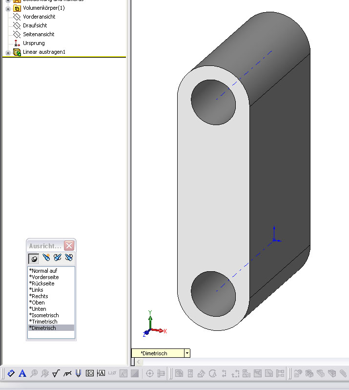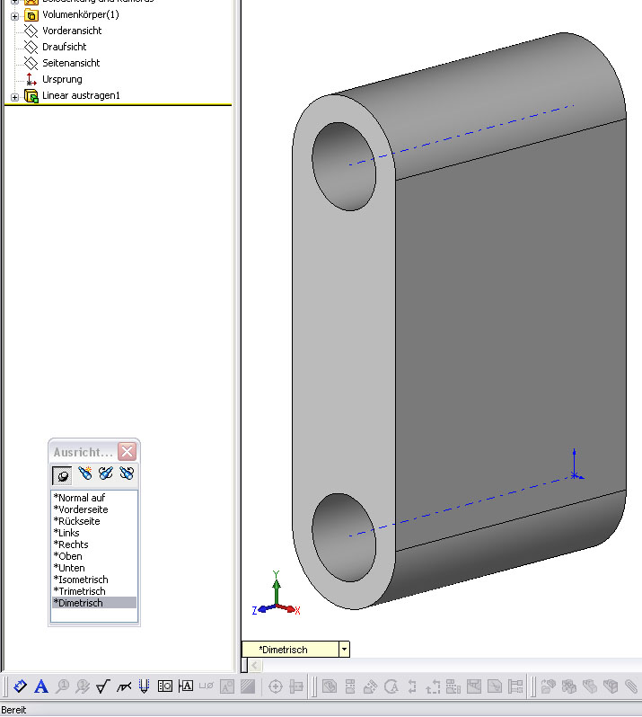 Bin jetzt selber extrem verwirrt. Hab mir das Ganze jetzt noch mal angesehen – und dabei ist mir folgendes Aufgefallen. Wir arbeiten im Moment mit SW2006/SP4.1. Solid Works haben wir jetzt seit 1997. Und ich bin mir eigentlich ziemlich sicher dass die 3D Ansicht schon immer anderst war.