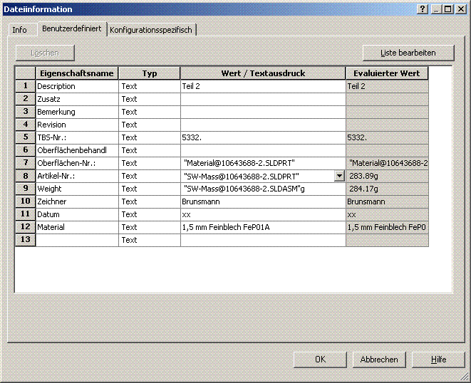 Zitat: Original erstellt von Rainer Zufall: ...Ich möchte nun den Wert der im Material beim Bauteil steht in der Baugruppe stehen haben.