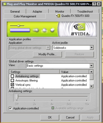 Hallo, Software Open GL ist nicht die Lösung, sondern nur der Beweis daß es an der Graka oder ihrem Treiber liegt. Da die FX1500 nicht das Problem sein kann würde ich mal die treiberversion checken. Kann auch für das 2.Problem verantwortlich sein.