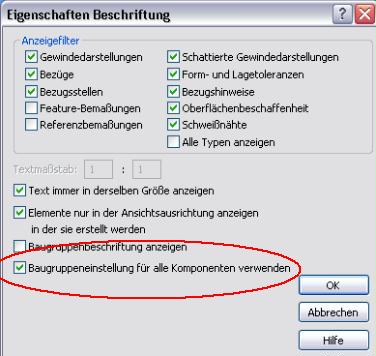 Danke...*schnief* Du siehst mich zu Tränen gerührt... Funktioniert bei Einzelteilen exzellent, bei Baugruppen werden natürlich die Beschriftungen der Teile eingeblendet, die noch nicht umgestellt sind. Aber die Einstellung für die Baugruppe kann man sogar für die Einzelteile übernehmen (s. Bild). Leider wirds nicht wirklich in den Einzelteilen gespeichert, das wäre die Krönung. Aber damit hast du uns schon jede Menge Arbeit und Ärger gespart, vielen Dank!!! Einige Dinge können so einfach sein. Ist ein schönes Weihnachtsgeschenk. Wenn du eine Frau wärst, würde ich dich jetzt zum Essen einladen, aber so bleibts nur bei einem dankbaren virtuellem Händedruck... Gruß, Stephan ------------------ Alles wird gut!!!  Eine Antwort auf diesen Beitrag verfassen (mit Zitat/Zitat des Beitrags) IP |