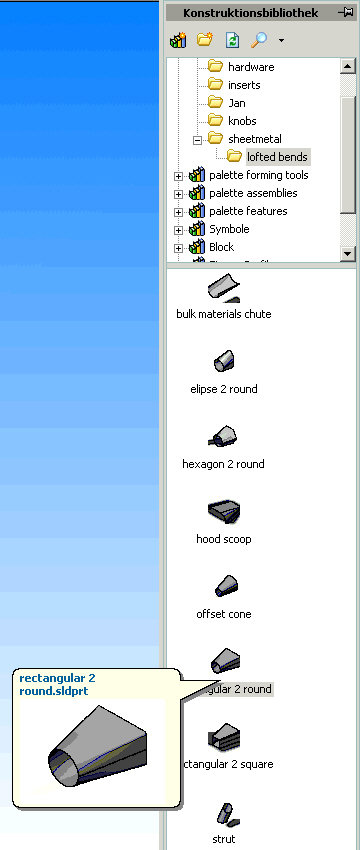 Hallo, nur mal so als kleine Anregung!! Einfach mal in der SWX-HILFE nachsehen und damit das auch etwas schneller geht, habe ich auch gleich den Suchbegriff bereit. Hier, bitte sehr: Blech-Werkzeuge, Ausgeformte Biegungen Ich glaube, das ist es, was du suchst. ------------------ Gruß BER (inzwischen AndreasBo) --------------------------------------- Es soll sogar Programme geben, die fehlerfrei sind.