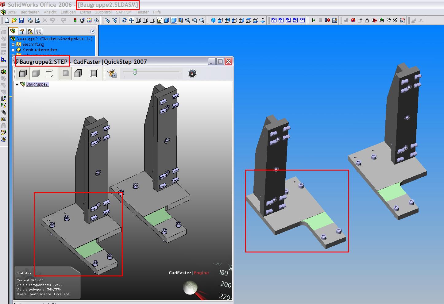 Kleiner Hinweiss zu STEP Datenaustausch. Im Bild zu sehen ist eine Baugruppe in Solidworks aus der ich ein Step file geschrieben habe und im Viewer zur Ansicht geöffnet habe. Wie man sieht ist im Step file etwas gravierend anders als in der SWX  Baugruppe  . Am Viewer liegts nicht, so kommts importiert in Solidworks auch rüber aus dem Step file. Problem: die L-förmige "Fussplatte" der beiden Winkel ist das gleiche Bauteil mit natürlich gleichem Dateinamen, die Platte ist beidseitig verwendbar. Was jedoch für das Stepformat wegen der gedrehten Orientierung im Raum mit gleichem Dateinamen ein Problem darstellt. Haben beide Fussplatten unterschiedliche Namen, gibts kein Problem. auch wenn die Orientierung gleich ist und das Bauteile lediglich in X oder Y Richtung verschoben ist, kein Problem. Nur verdreht geht nicht  ------------------ Chaos ist eine Ordnung, die wir lediglich nicht durchschauen können Eine Antwort auf diesen Beitrag verfassen (mit Zitat/Zitat des Beitrags) IP |