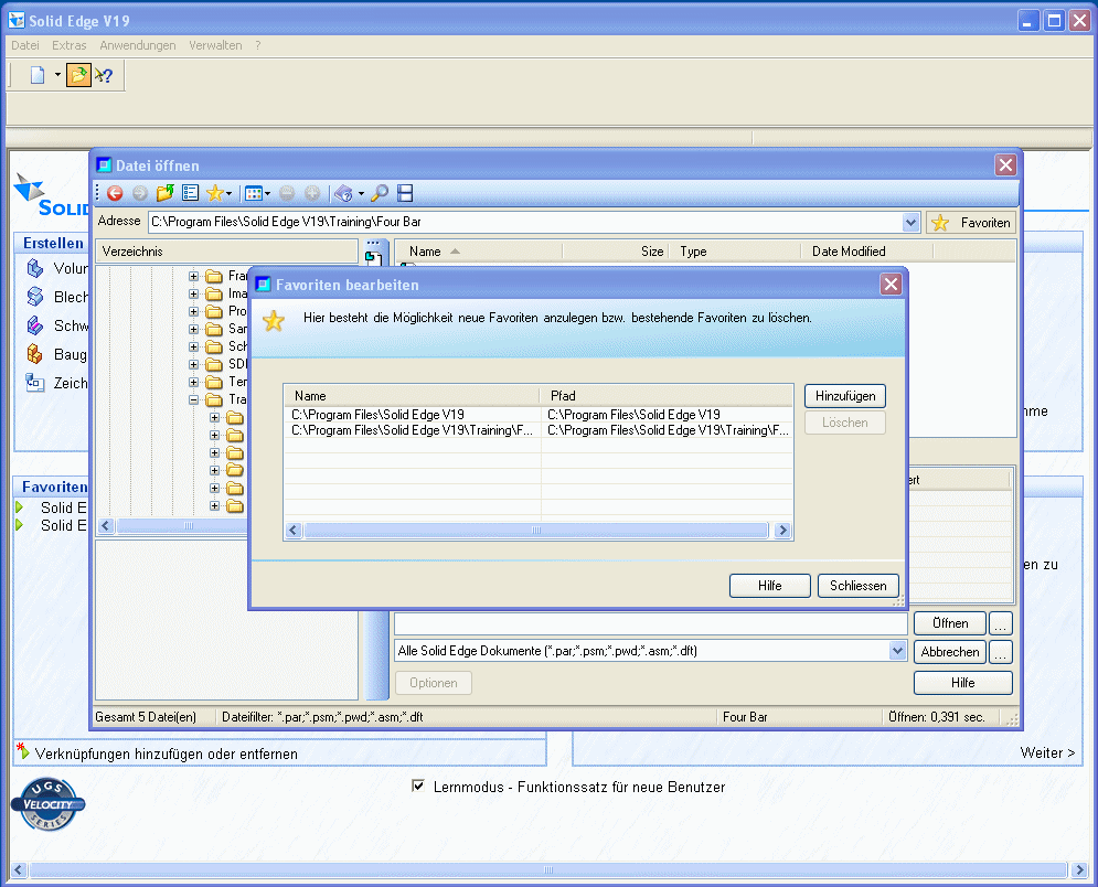 Hallo und einen schönen guten Morgen Marco. Anbei findest du 2 Bilder. Bild 1 zeigt die Pfadangaben für die angesprochenen Dateien. Bild 2 zeigt den Inhalt der .config. Ist dies so richtig? Zusatzanwendung ist wählbar. SWX startet verzögert. Bei "Datei öffnen" eerscheint der "alte SWX " Dialoge. Also ungefähr so das wie bei TR0907. Also Bild 3 zeig dir die Maske. Fröhliches Schaffen KOELRIT Eine Antwort auf diesen Beitrag verfassen (mit Zitat/Zitat des Beitrags) IP |