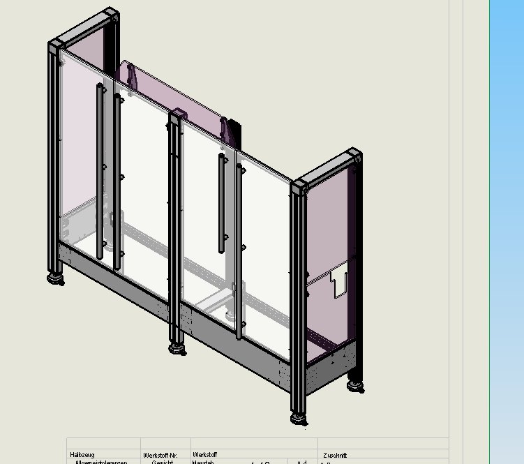 Hallo SWX  Gemeinde! Ich habe bei einer Maschine einen Schutzverbau aus Glasscheiben. Nun wäre es sehr hiflreich, die Komponenten hinter den Scheiben in der 2D Zeichung darzustellen. Dies hätte ich jedoch gerne so, das ich dazu nicht die Unsichtbaren Kanten anzeigen muss, auch die Möglichkeit der Schattierten Darstellung würde ich gerne vermeiden. Im Forum habe ich zu diesen Thema nichts konkretes gefunden, lediglich Themen von Alternativpositionen, was aber etwas völlig anderes bezwecken soll. Solltet ihr einen Vorschlag kennen, teilt ihn mir doch bitte mit. Danke, Formi ------------------ Engineers have the power to bring minds in reality! Eine Antwort auf diesen Beitrag verfassen (mit Zitat/Zitat des Beitrags) IP |