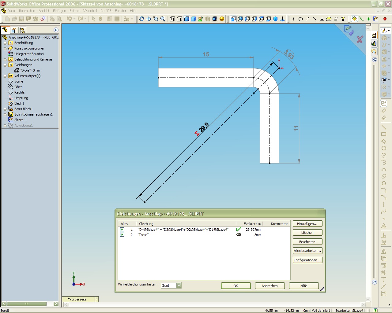 ![]() Abwicklungsmaße in Stückliste