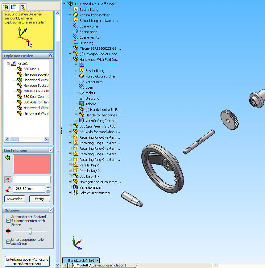 Nun sollen diese teile zusammen in der Baugruppe C als Explosionsansicht gezeichnet werden, ist ja mit Konfigurationen kein Problem.