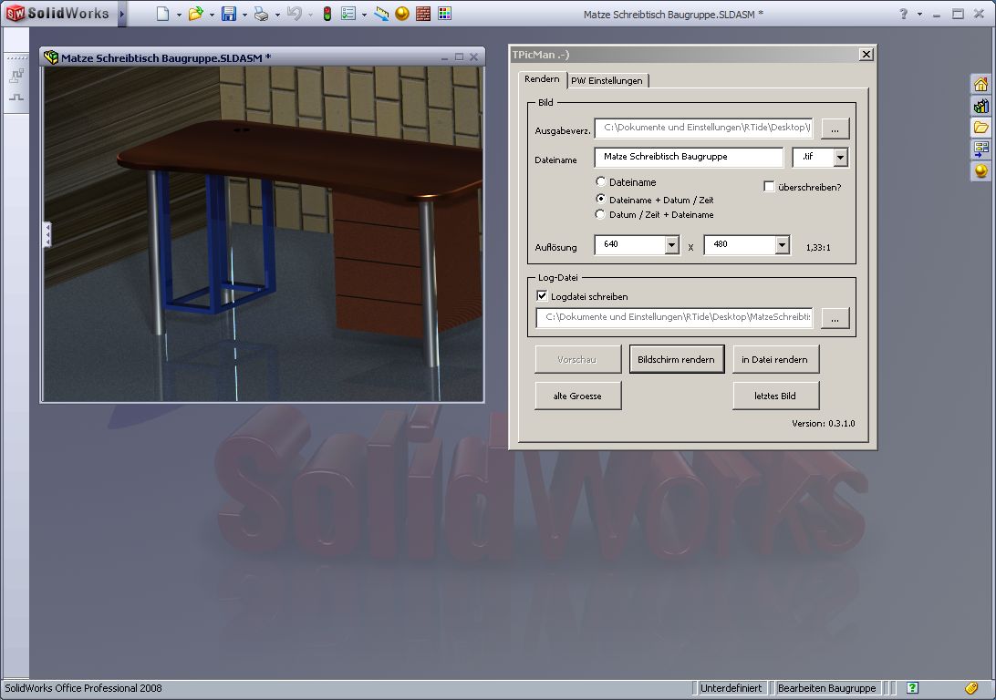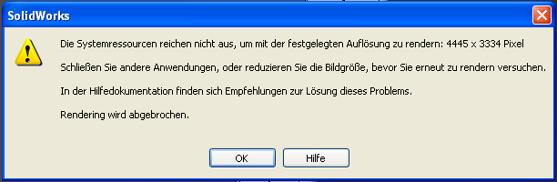 Hey! Hans hat Recht. Ich arbeite mit SW 2008 1.1, Photowoks. Die Erscheinungsbildzuweisung ist schlicht eine Katastrophe. Teile werden zugewiesen, die nicht angwählt sind, und werden nach dem Löschen des Materials transparent usw.. Die Fehlermeldung, dass zu wenig Speicher zum Rendern vorhanden ist kommt bei mir auch ständig, obwohl die Teile nicht aufwändig und meine Maschine recht neu ist. Es kann nur besser werden! Gruß Klaus Eine Antwort auf diesen Beitrag verfassen (mit Zitat/Zitat des Beitrags) IP |