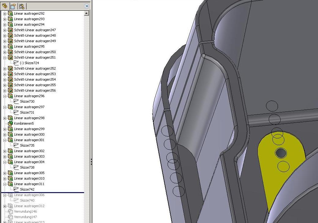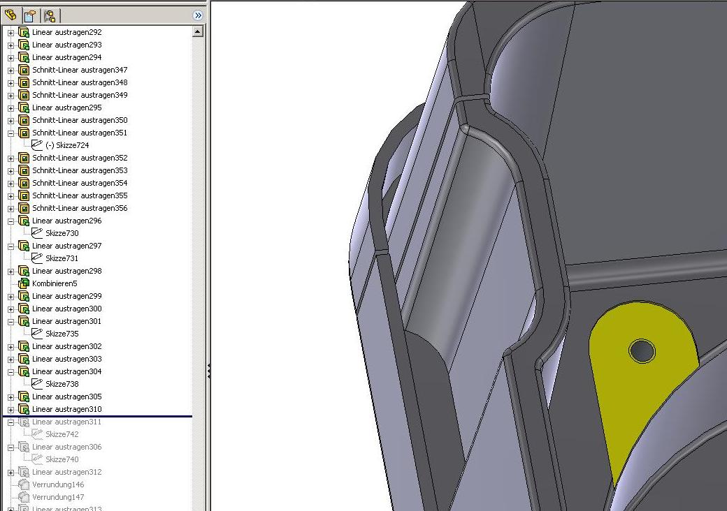 Abhilfe: Wenn du das Gewinde gefunden hasst, das da durch die Gegend spuckt, auf die Gewindebeschriftung im Featurebaum mit der rechten Maustaste klicken und von Hand einen Wert eintragen, bzw. das Bohrungsfeature nochmal aufrufen und neu rechnen lassen. Hilft... etwa 10min