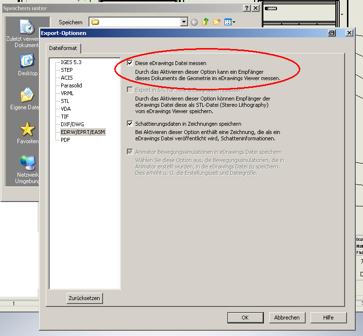 Der Ersteller der E-Drwaing sollte folgendes tun: Datei speichern unter -> EDrawing auswählen -> auf "Optionen" klicken -> Messen aktivieren -> Fertig! ------------------ Viele Grüße, THSEFA [Diese Nachricht wurde von THSEFA am 28. Feb. 2008 editiert.] Eine Antwort auf diesen Beitrag verfassen (mit Zitat/Zitat des Beitrags) IP |