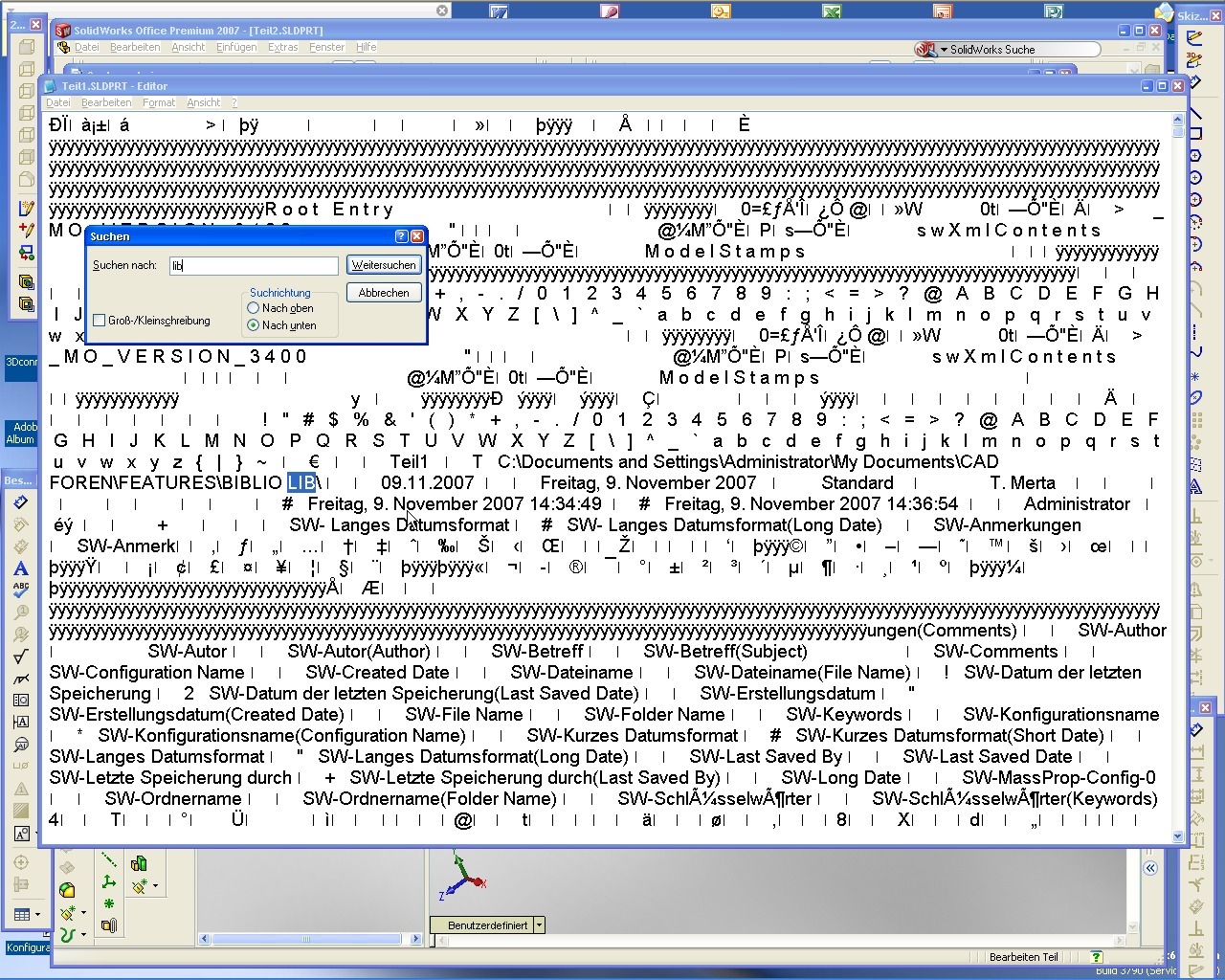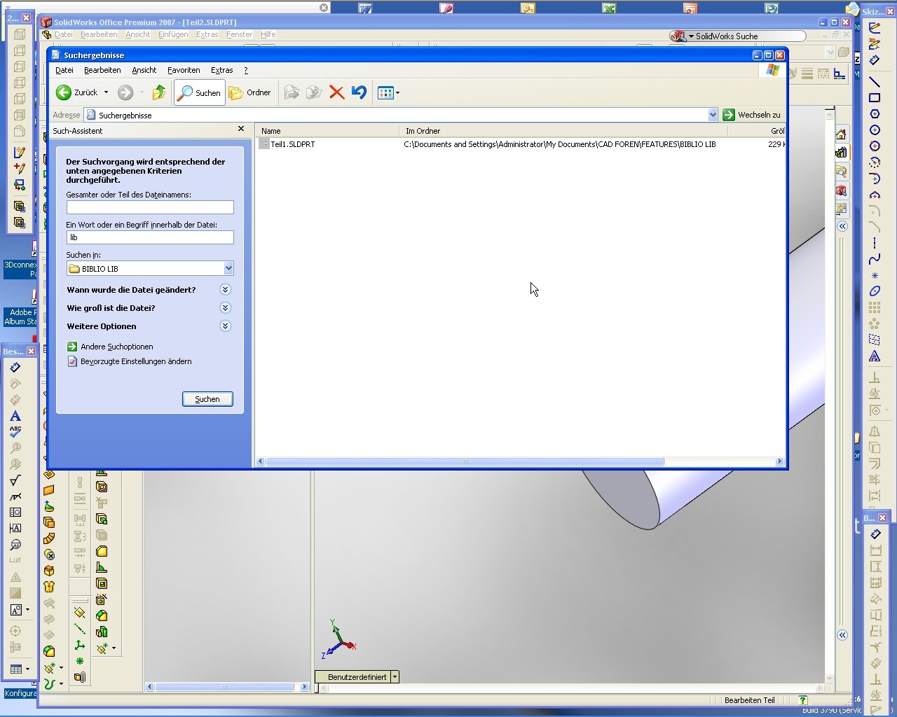 Die Suche im SWX-Explorer funktioniert auch ohne die Desktop-Search von Microdingens...allerdings mit entsprechenden Wartezeiten. Also immer VOR der Suche in den Optionen die Suchpfade definieren. Sonst kannst du Mittageessen gehen. Ob allerdings die Verwendungssuche von Bibliotheksfeatures damit möglich ist, weiß ich nicht, das habe ich mit bisher nicht angetan. ---------- Der aktuelle Solidworks-Explorer ist IMHO ein typisches Beispiel, wie ein relativ gut funktionierendes Werkzeug zu tode entwickelt werden kann.Ich fand die frühere Version davon wesentlich praktischer und vor allem intuitiver und eindeutiger zu bedienen. Aber das ist nur mein persönlicher Eindruck davon...