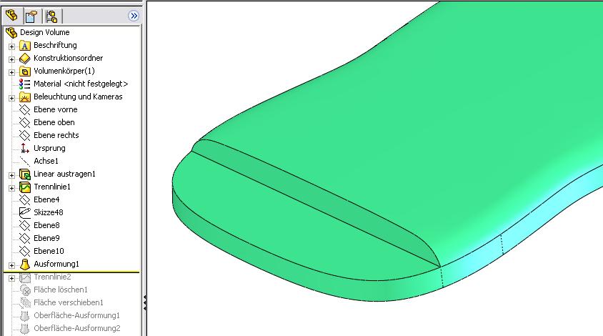 Da SWX ja mehr auf Solid, als auf Flächen ausgelegt ist, ist es ja klar, dass man da mehr Augenmerk drauf hat. Allerdings sind die Flächenfunktionen bei SWX gar nicht so schlecht und man kann doch einiges damit anstellen. Wie bei jedem Programm muss man nur wissen wie und eine gewisse Routine entwickeln. Also ist es eine Frag der Erfahrung und kein Manko von SWX. Wer die Zeit hat, sollte mal mit den Flächen zaubern, irgendwann kommt dann mehr und mehr das AHA.