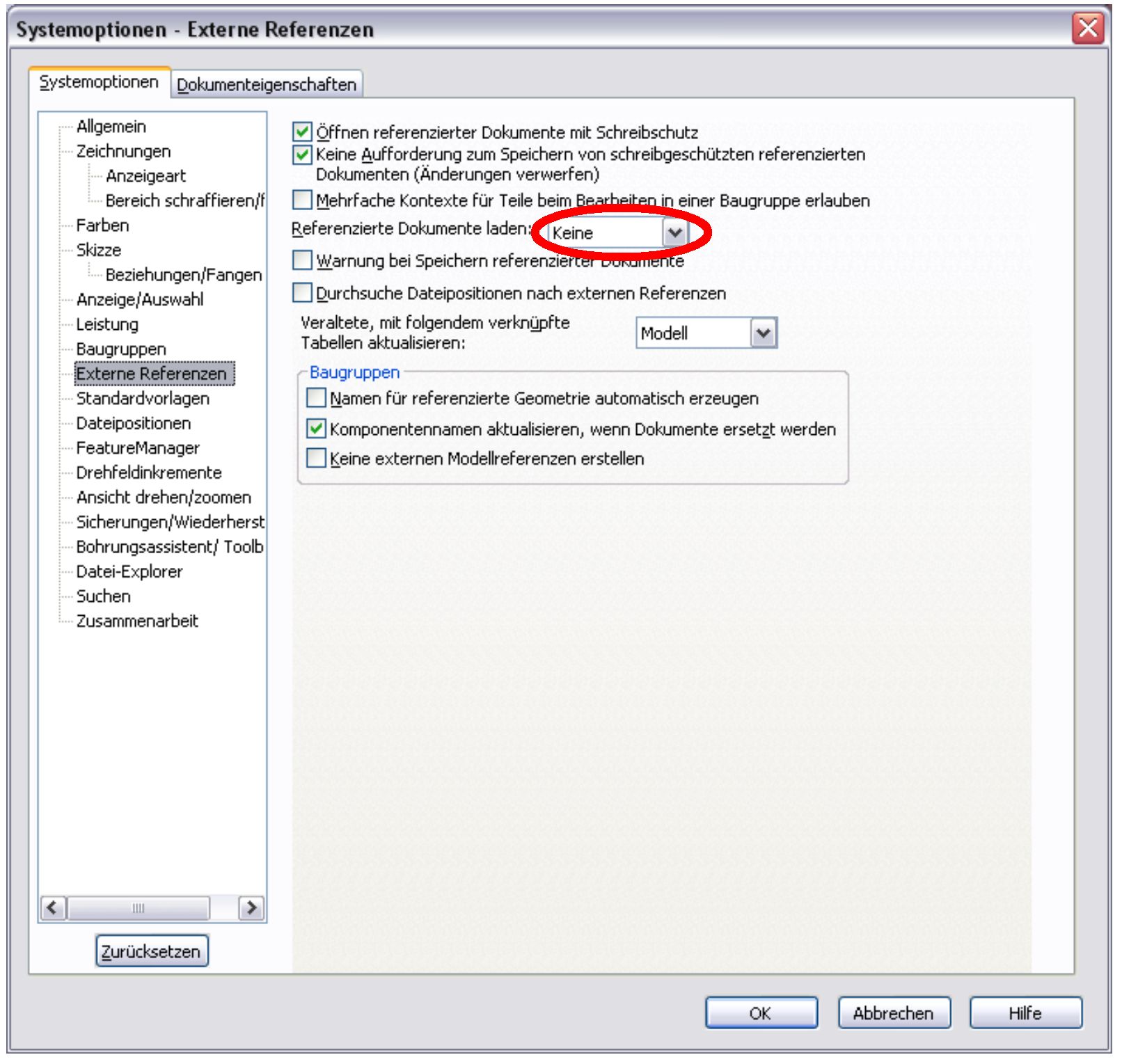 Wenn so was beim uns in den Produktionsdaten auftauchen würde, hätte der verantwortliche (Ex )Konstrukteur ein paar unangenehme Stunden auf der Streckbank zu verbringen.... (Und wenn er sie vorher noch selber konstruieren muss), wahlweise Durchfall nicht unter 4 Wochen.... Im Ernst, so was killt dich genau dann, wenn du es auf keinen Fall benötigst. Bitte achte darauf, dass in deinen Teilen keine wild gewordenen Referenzen rumfliegen zu Teilen die im Nirvanna verschwunden sind. Das ist grob fahrlässig. Grüße Günter ------------------ Wie man Fragen richtig stellt Eine Antwort auf diesen Beitrag verfassen (mit Zitat/Zitat des Beitrags) IP |