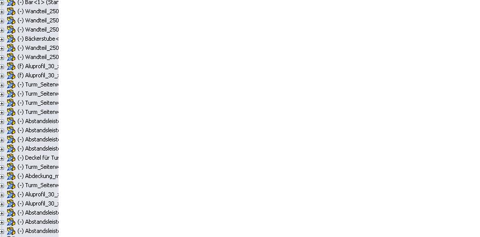 Habe den Featurebaum 3x durchgeklickt und nichts gefunden, dann bin ich zum Allheilmittel AEG (ausschalten einschalten gut) gewechselt. Jetzt habe ich meine BG wieder offen, es kommt keine Fehlermeldung mehr, dafür sind meine ganzen Bauteile ganz vorne dran blau markiert (siehe Bild) Was hat denn das schon wieder zu beudeuten??