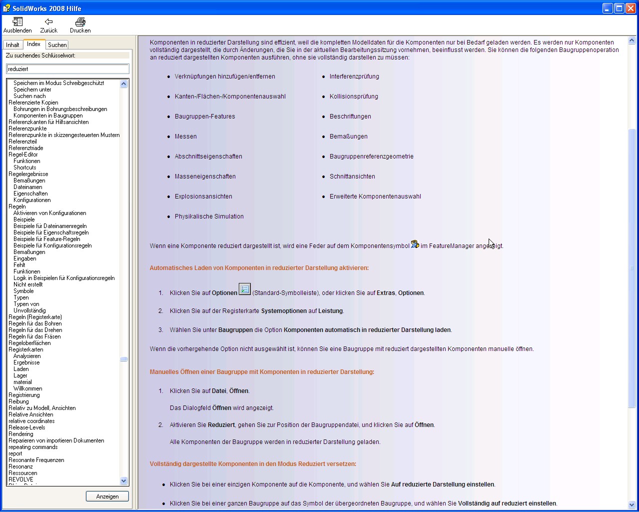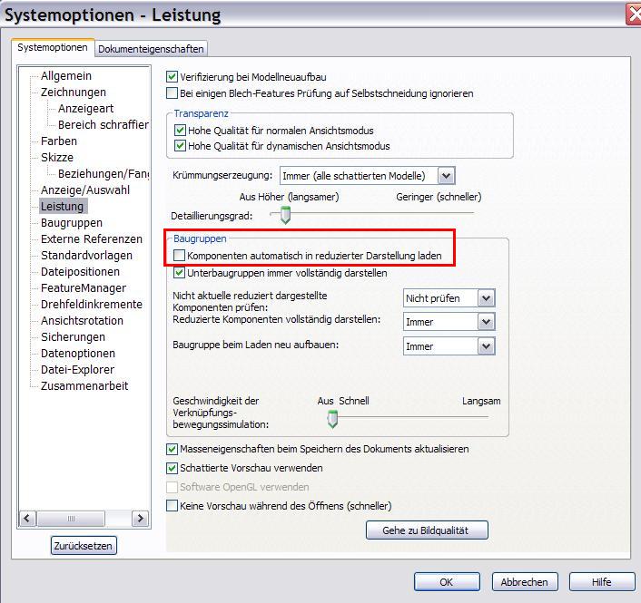 Hi Mike in der SW Hilfe hab ich (wieder einmal) gar nichts zu meinem Problem gefunden. Bist du dir sicher, dass sich die blaue Markierung auf reduziertes laden bezieht? Ich habe das nicht eingestellt und definitv noch keine 500 Bauteile in meiner BG (da switcht SW ja automatisch um, oder?). Ich habe mittlerweile jedes blau markierte Teil aufgemacht, Einfügeleiste einmal hoch und runter geschoben, abgespeichert und dann war die blaue Markierung in der BG weg- deswegen frage ich auch nach, ob du dir mit der reduzierten Darstellung sicher bist... Eine Antwort auf diesen Beitrag verfassen (mit Zitat/Zitat des Beitrags) IP |