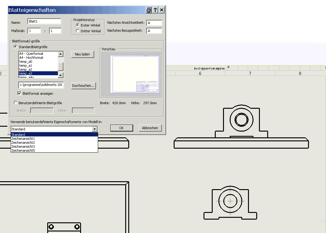 Hallo Jema, willkommen im Forum  Wie wäre es mit einem weiteren Blattformat, in das Du die entsprechenden Einträge / Dateieigenschaften machst? Muss natürlich dann z.B. fuerBlatt2.slddrt benannt werden... HTH, Ralf ------------------ Eine Antwort auf diesen Beitrag verfassen (mit Zitat/Zitat des Beitrags) IP |