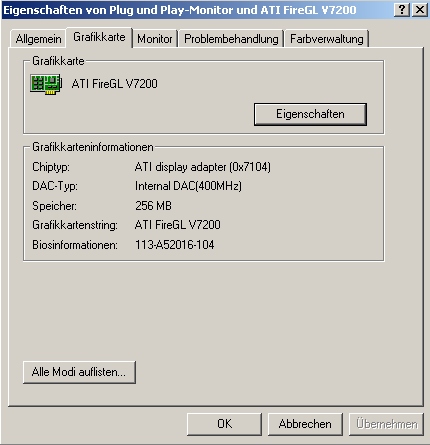 Hallo, also ich setzte bei meiner ATI FireGL V5100 auch zwei Monitore ein und habe keine Probleme. 20" TFT und 19" Röhre - kann die Fenster einfach von einen in den anderen Bildbereich ziehen. Nutze den aktuell zertifizierten Treiber von der SWX Seite. ------------------ Gruß Thorsten Eine Antwort auf diesen Beitrag verfassen (mit Zitat/Zitat des Beitrags) IP |