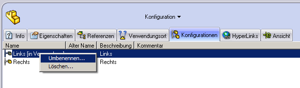 Konfigurationen kann man mit dem SWX  -Explorer auch dann noch umbenennen, wenn sie schon irgendwo eingebaut sind. Vielleicht löst der SWX  -Explorer auch das Problem mit der "störrischen" Konfig. Gruß, Jens ------------------
