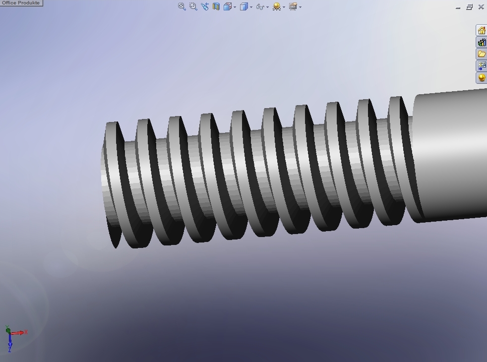Vielen Dank für deine schnelle Antwort =) Habe mich gleich dort angemeldet. Ist wirklich ein sehr guter Hinweis von dir gewesen =) Allerdings habe ich ein Problem bei der Darstellung. Habe mir veschiedene Trapezgewinde heruntergeladen. Wenn ich die Datei mit SW08 öffne, sehe ich eine Spindel, aber das Gewinde hat gerade mal 9-10 Gewindegänge?! (siehe Anhang) Ist was in SW falsch eingestellt, oder warum sehe ich nur so wenig vom Gewinde? LG Eine Antwort auf diesen Beitrag verfassen (mit Zitat/Zitat des Beitrags) IP |