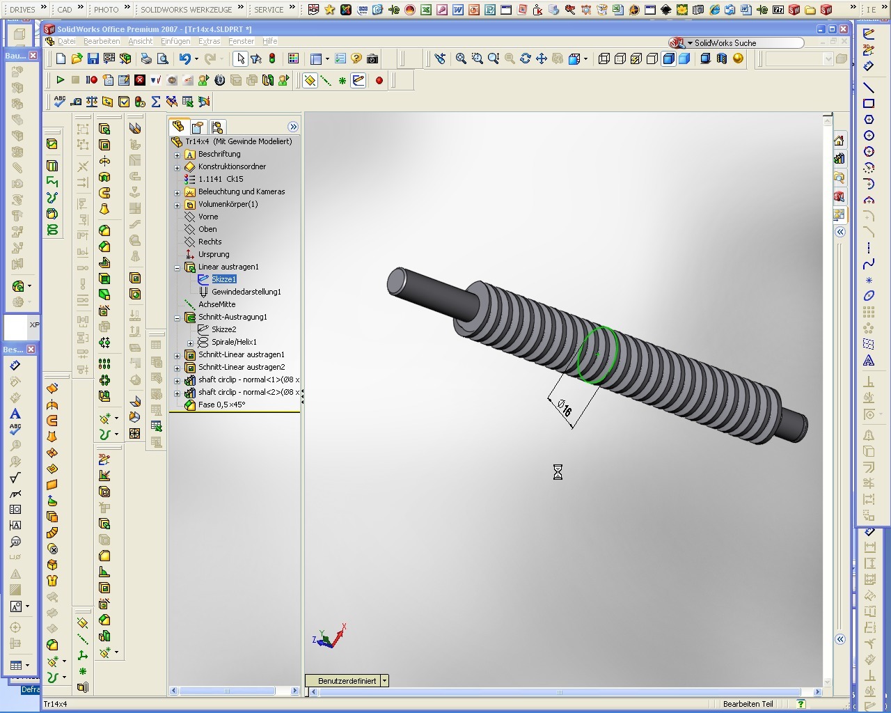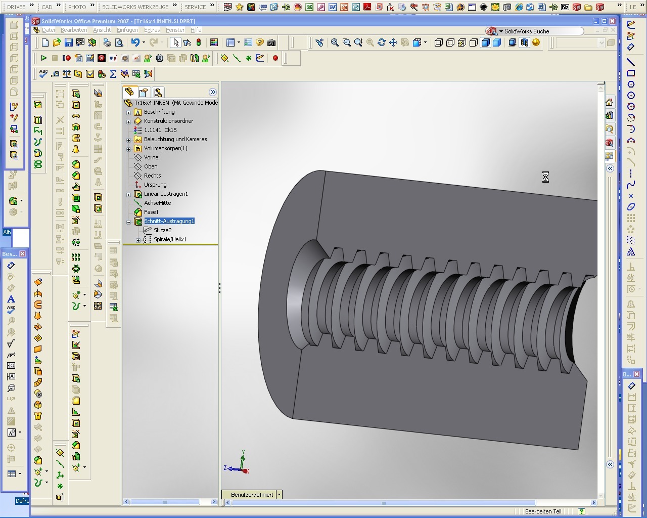 na dann viel Spaß - solche "Dinger" sind echte Killer. Male Dir als Beispiel ein DN 140 mit einem TR Gewinde 6mm (in Echt mit Radien usw.) auf einer Länge 100mm ( Profil ausgetragen über Helix als Schnitt). Bin dann gespannt wie lange Du diese Meinung weiter vertretten wirst.:D Ich glaube aus diesem Grunde sind diese Modelle in einem kleinem Bereich andeutungsweise voll ausgebildet und mehr nicht. Sollte ich mich täuschen Zitat: ein nagelneuer Laptop mit Quadro-Karte