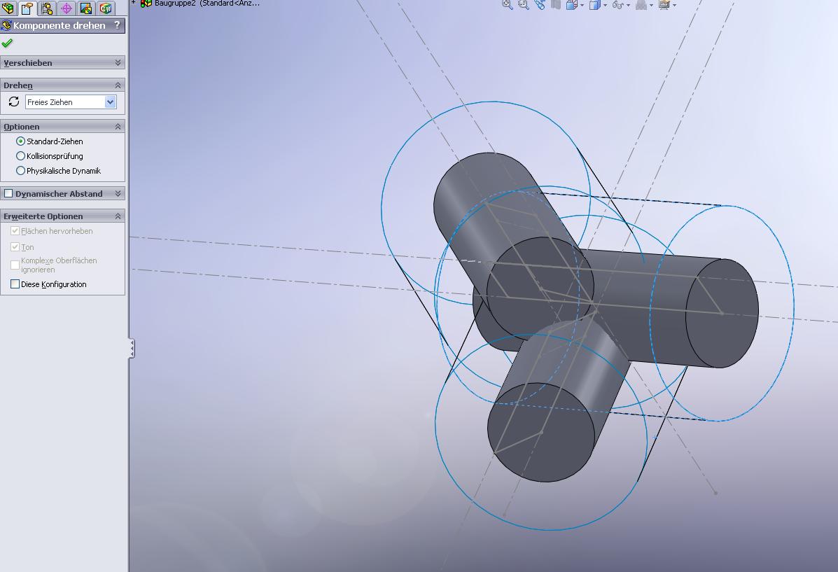 Nanana - nicht gleich die Flinte ins Korn werfen  Du scheinst kein Anfänger zu sein  - jedenfalls nicht was die Konstruktion angeht  Solche Aufgabenstellungen (quadratische Federn, 3 Kegel, ...) sind keine Anfängeraufgaben - in keinem Konstruktionsjob und in keinem CAD. Du bist doch mit der Hilfe hier schon recht weit gekommen. Deine Probleme sind auch relativ speziell. Die Funktion der allgemeinen Punktberührung funktioniert im SolidWorks sehr gut. Bei Dir ist es dadurch etwas spezieller, das die Rotation ja auch noch erhalten bleiben soll. Auch ist es so das Bücher für allgemeine und nicht für spezielle Lösungen geschrieben werden  Sonst gäbe es auch sehr viel zu lesen Grüße, Ralf ------------------