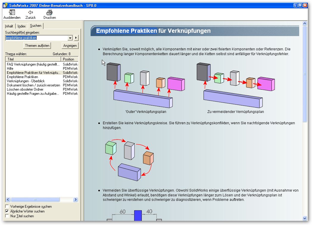 Da wird auch nochmal auf die Problematik mit Verknüpfungsketten und Verknüpfungskreise eingegangen. Auch wird empfohlen, Komponenten möglichst voll zu defienieren, da sie bei Bewegungen schneller zu berechnen sind.