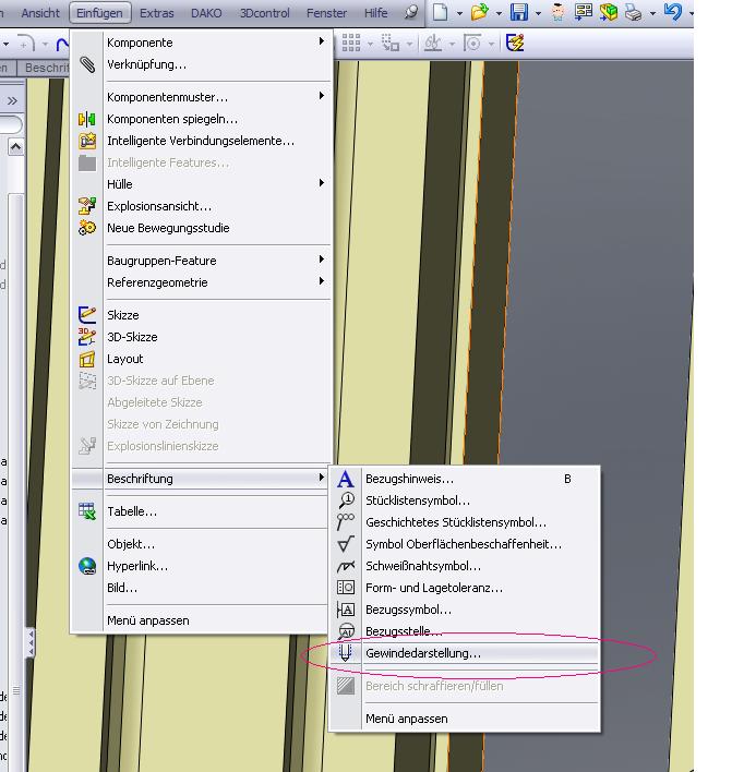 Ok, Aber wenn ich davon eine Zeichnung erstelle und das Gewinde bemassen möchte bekomme ich nur den Durchmesser und nicht die Gewindebeschreibung. Weitere Frage, geht das irgendwie das ich dem Teil/Fläche sage du bist jetzt ein Gewinde bestimmter größe und der Durchmesser ändert sich auomatisch auf den entsprechenden Kerndurchmesser bzw. Flakendurchmesser? ------------------ Ordnung ist das halbe Leben - die andere Hälfte ist allerdings schöner. Eine Antwort auf diesen Beitrag verfassen (mit Zitat/Zitat des Beitrags) IP |