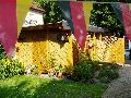 speziell für Ziese-meier: Nachtrag mein verarbeitetes Material Beziehe mich auf die Fotos oben!! 1 4 Stück Pfosten 120x120 … 2,5 m 2 2 Stück Längsträger 160*60 … 7 m und 4,7 m 3 1 Stück Leimholzbogen d= 2m 110x110 4 8 Stück Querträger 120*80 … 3,0 m 5 21 m² OSB-Schalung 18 dick 6 8 Stück Flachrundschraube M12x150 7 8 Stück Gewindestange M12x550 8 24 Stück Mutter M12 9 32 Stück U-Scheibe gross d=13 10 5 Stück Pfostenanker U 121-600 mm Den langen Balken mit den Gewindestangen "durch und durch" an der Wand befestigt. Der gebogene Leimholzbalken war das Teuerste, ca. 250,-. Die Balen links im Abstand von imho 181 cm, damit die handelsüblichen Sichtschutzfelder dazwischenpassen (Bild 3). Dach mit OSB, 2x Dachpappe, 1x längs genagelt, 1x quer geklebt(gesandet oder so). Hinten Dachrinne braun mit Regentonne . Pfostenanker je nach Untergrund einbetonieren oder andübeln. Die Pfosten habe ich 160x60 ausgeklinkt, um den Längsbalken aufzunehmen, mit Pos 6 verschraubt. Hinten habe ich dann noch zwei Pfosten eingebracht wg. der Felder, aber is dann Deko, sagt dir deine Frau dann schon, wie sie es haben will. Zur Statik habe ich mich bereits geäussert, Genehmigung war nicht nötig, wie andere schon geschrieben, Nachbar weit wech. Gebogenen Balken bestellst du beim Holzhändler deines geringsten Misstrauens. Aber: der hat sich sowas von bewährt. Ich muss rückwärts seitlich einparken, das ist einwandfrei. Und gut sieht es auch noch aus. Ist zwar teuer, aber man baut sowas ja nicht allzu oft. So ein carport ist übrigens eine fantastische Schlechtwettervariante für die sommerliche Grillpartie, nur der Grillmeister hat den Zonk. ------------------ ralfi Überlegen macht überlegen Eine Antwort auf diesen Beitrag verfassen (mit Zitat/Zitat des Beitrags) IP |