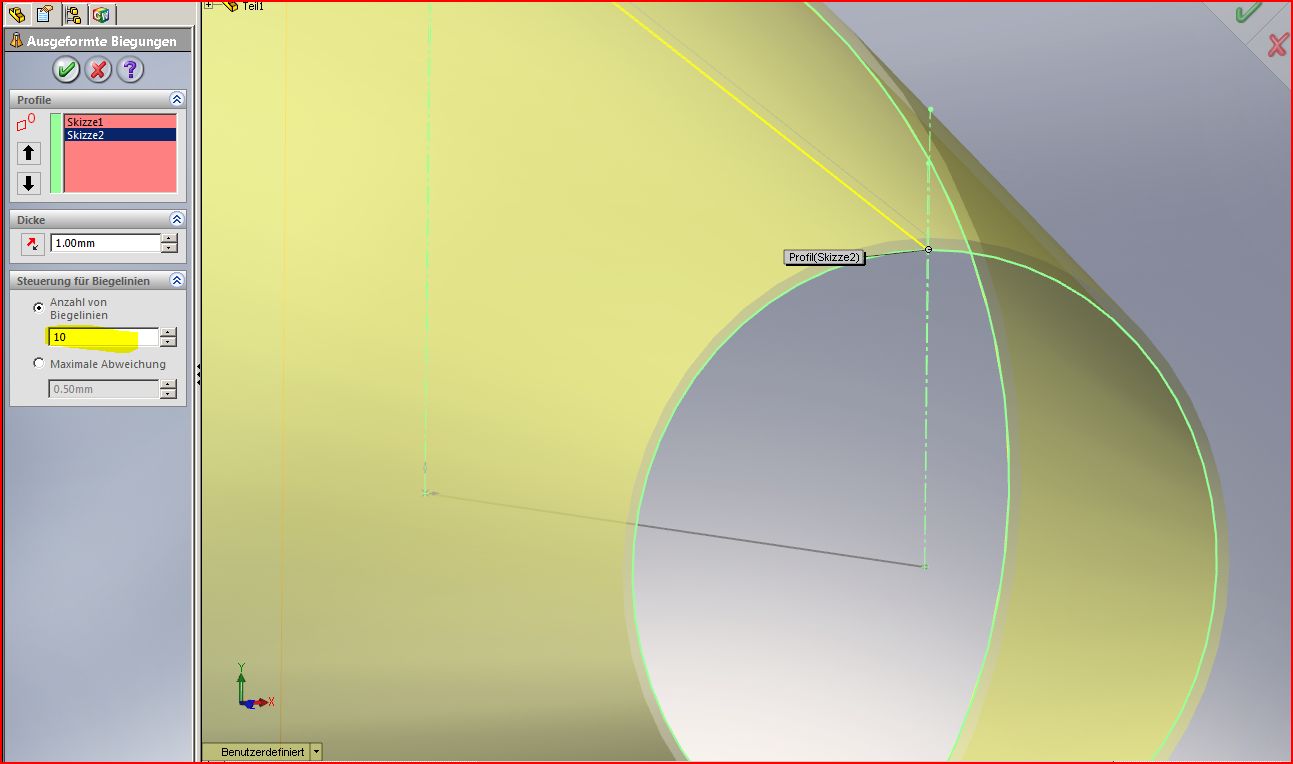 Hallo, in dem Fall würde ich mit Blech anfangen ich weiß das beantwortet nicht nicht Deine Frage hat aber viele Vorteile (kannst auswählen wieviel Biegelinien Du haben willst und soweiter) Hoffe kannst mein Beispiel gebrauchen MfG Krümmel  ------------------ Stillstand ist Rückschritt Eine Antwort auf diesen Beitrag verfassen (mit Zitat/Zitat des Beitrags) IP |