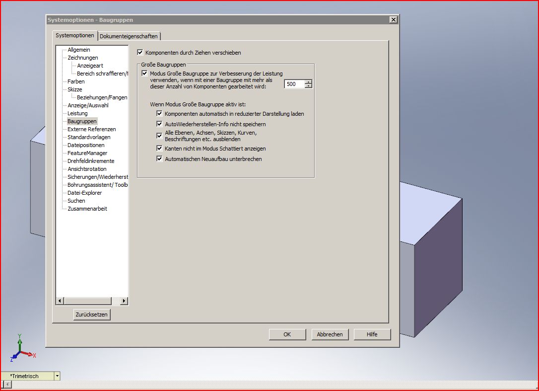 in Modus große BG lädt! (Reduziert) Oder Umfangreiche Unterbaugruppen als Part speichern.