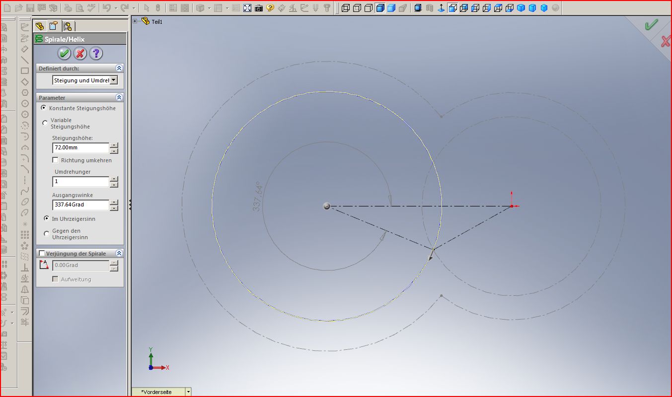 Hallo, Ich verzweifel gerade hier an einer Helix mal wieder. Im Bild ist der Schnittpunkt zweier Kreise bzw. die Spitze des Dreiecks erkennbar. Wie schaft man es in SW das die Helix genau an diesem Punkt startet. Das hindrehen von Startpunkt über das maß is ja nicht wirklich das gelbe vom Ei. Da muß es doch noch was anderes geben. Genau an diesem Punkt sollen 2 Helix beginnen. eine rechtsrum und die andere linksrum. MfG AMG Eine Antwort auf diesen Beitrag verfassen (mit Zitat/Zitat des Beitrags) IP |