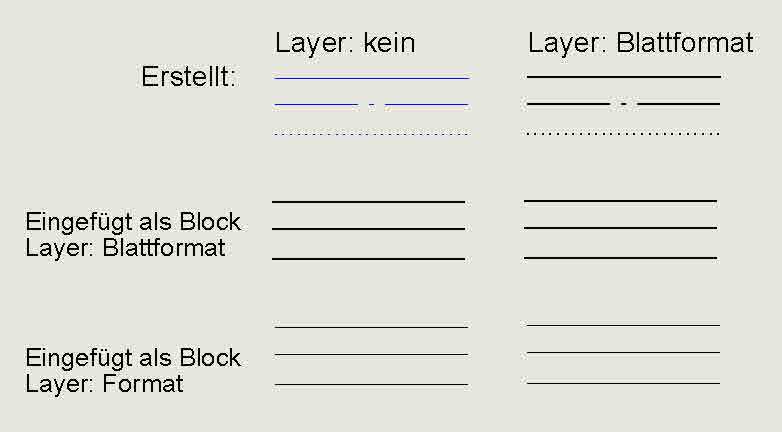 Ändere ich jedoch den Layer von Blattformat auf Format, sind die Linien dünner. wenn ich auf Layer "kein" stelle, sind sogar die gestrichelten Linien gestrichelt.