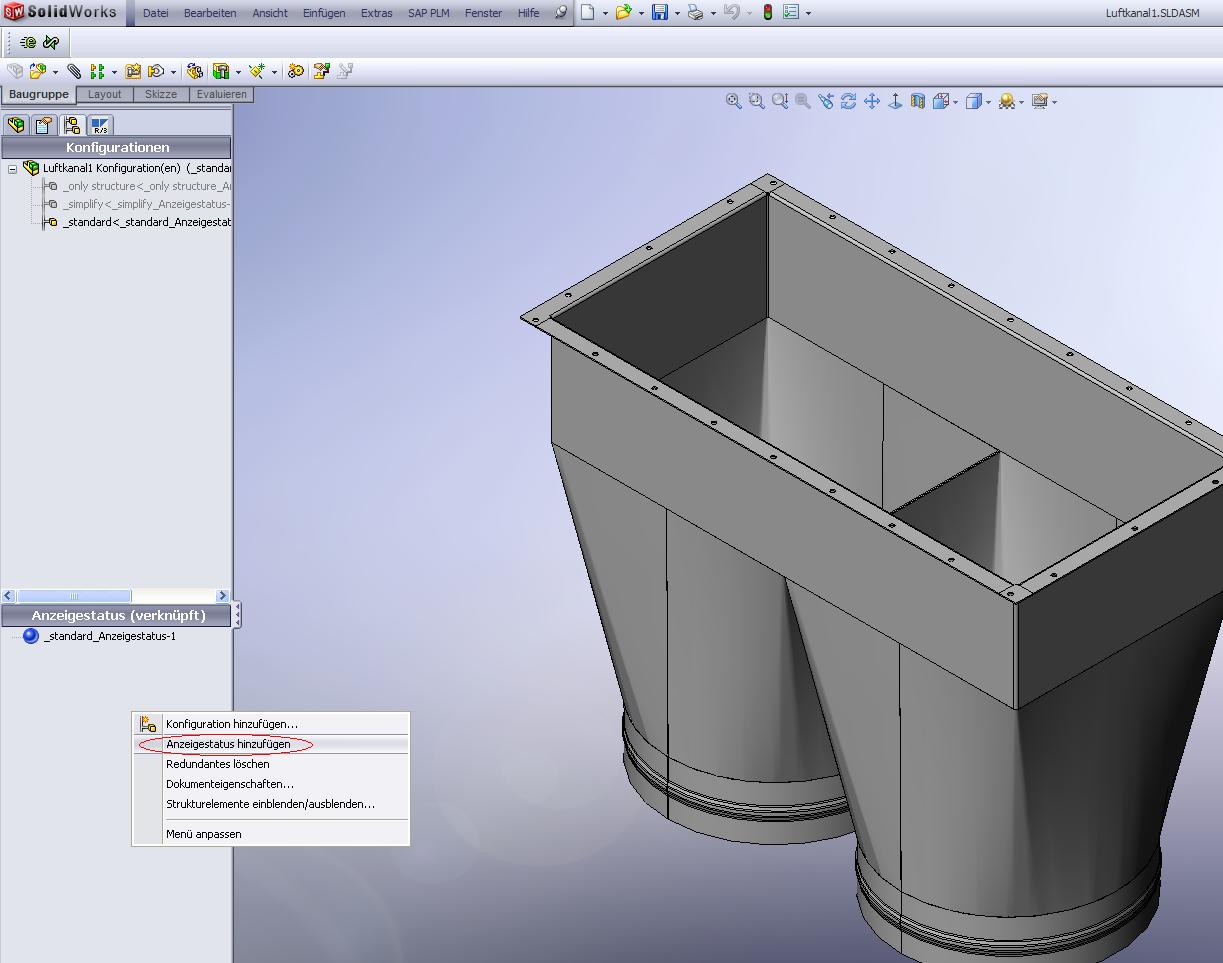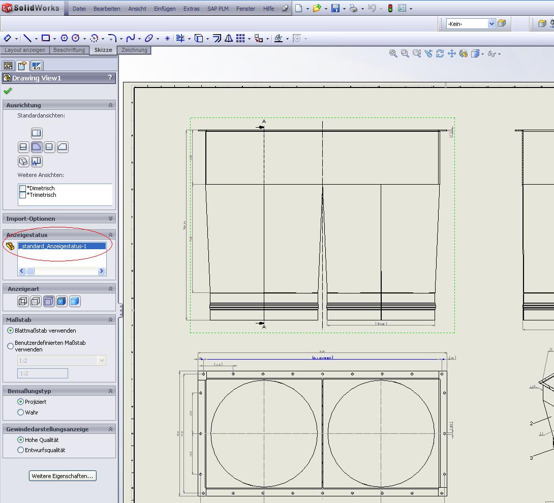Hallo Schattenspringer, im Fenster wählst Du jetzt die Bauteile aus, die im Schnitt halt nicht geschnitten werden müssen. Für die Vorderansicht legst Du einen Anzeigestatus an "Ohne Lager, etc" in der Baugruppe an. diese wählst Du dann in der Vorderansicht an. s. Bild dazu. MFG Robert Hess. P.S: Die Anzeigestati kann ich pro Ansicht steuern, was bei Konfigs , wo eine abhängig von der anderen ist nicht geht. Eine Antwort auf diesen Beitrag verfassen (mit Zitat/Zitat des Beitrags) IP |
